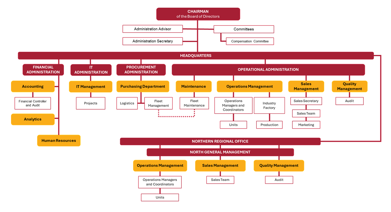 Uniself’s Management Team is organised as follows: